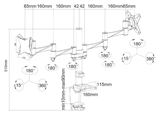 Het draagvermogen van de arm is 9kg per scherm.