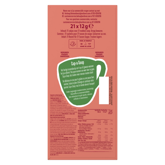 Bevat 21 zakjes voor 21 heerlijke mokken soep .