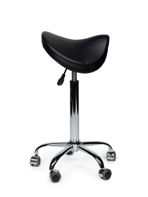 Zadelkruk Office Premium standaardZoek jij een lage zadelkruk die comfort, stabiliteit en duurzaamheid combineert? De zadelkruk Office premium standaard is speciaal ontworpen voor situaties waar een medium werkhoogte gewenst is. Het zadel is opgebouwd uit 5 centimeter dik koud schuim – uniek in Nederland – dat dankzij zijn veerkracht en ademend vermogen langdurig zitcomfort garandeert. De ergonomische zadelvorm bevordert een gezonde houding en helpt fysieke klachten voorkomen, zelfs bij intensief gebruik. De zitting is afgewerkt met extra stevig kunstleer dat luxe oogt, slijtvast is én eenvoudig schoon te maken. Het robuuste zwarte voetenkruis zorgt in combinatie met harde wielen voor uitstekende stabiliteit en wendbaarheid. Dankzij de traploos instelbare gasveer (verkrijgbaar in drie hoogtes) pas je de zithoogte eenvoudig aan jouw werkplek aan.Kenmerken: