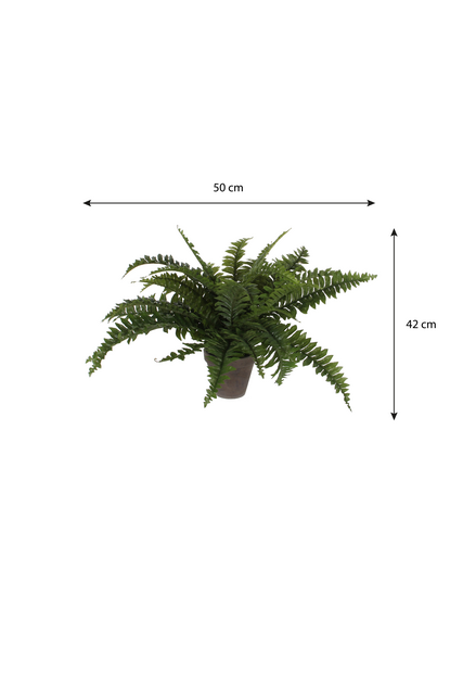Klaar om zorgeloos te genieten? De kunstplanten van Mica Decorations zijn niet van echt te onderscheiden, maar hebben geen enkel onderhoud nodig. Deze Boston varen valt op door de groene, diep ingesneden, krullende bladeren. Levensecht, maar met alle voordelen van een kunstplant. De plant is al gemodelleerd en stevig verankerd in een terracotta pot met basalt grijze pigmenten waardoor elke pot uniek is. Na aankoop kan de plant dus direct worden neergezet. Naar wens kan de bijgeleverde pot natuurlijk ook als stevige basis dienen voor een sierlijke overpot. Combineer de varen met andere kunstplanten en -bloemen uit de collectie en breng meer groen in huis. De plant heeft een hoogte van 42 cm en een diameter van 50 cm.