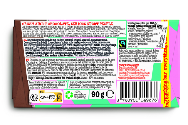 Chocolade Tony's Chocolonely melk everything reep 90 gram