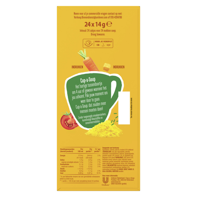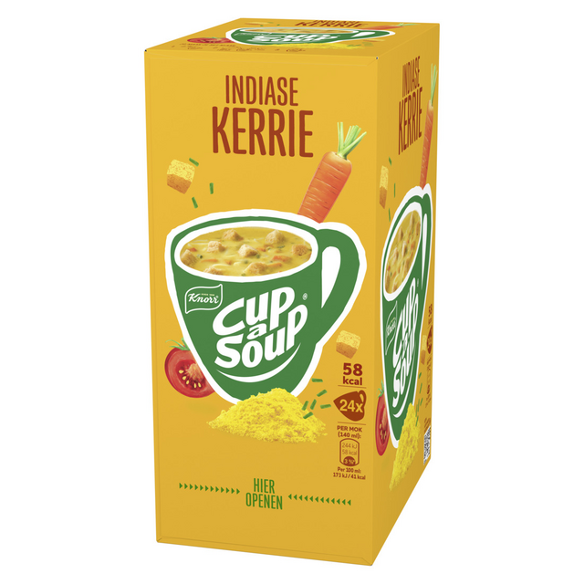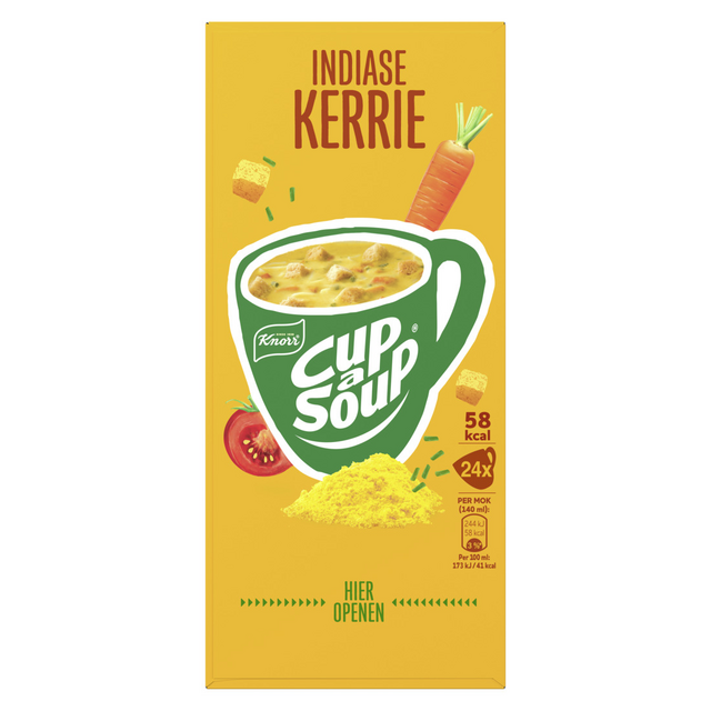 In een verpakking Cup-a-Soup Indiase Kerrie zitten 24 heerlijke zakjes Cup-a-Soup.