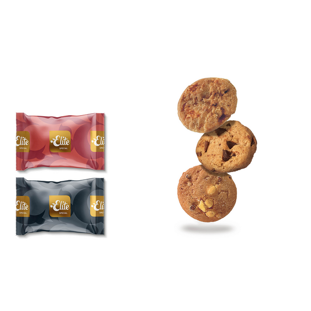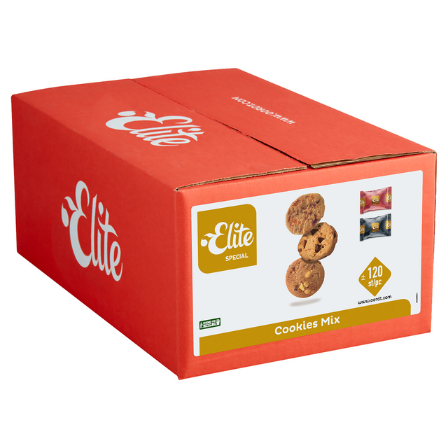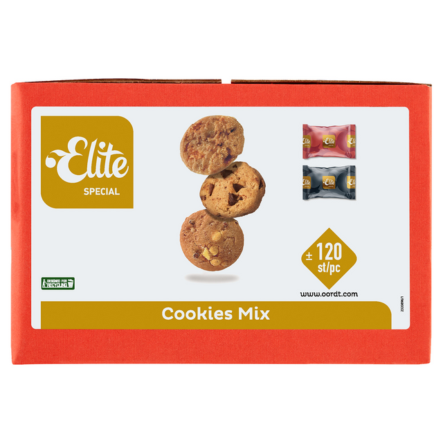 Drie knapperige koekjes in de smaken. Een Chocolate chip cookie met 31% pure chocolade druppels en 9% melk chocolade druppels. Een Caramel Sea Salt cookie met 14% boterkaramelstukjes en zeezout. Een Raspberry White Chocolate chip cookie met 30% witte chocolade druppels en 7,5% frambozenstukjes. Heerlijke en trendy smaken, samengebracht in één mix. Hygienisch per stuk verpakt.