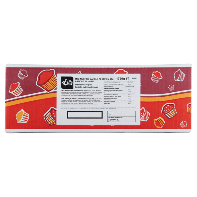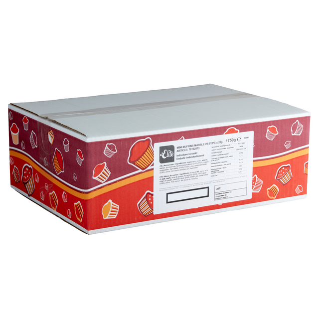 Zachte vanille en chocolade muffins. Te serveren naast een kopje koffie of thee. Handig voor in de horeca. Hygiënisch per stuk (25 gram) verpakt.