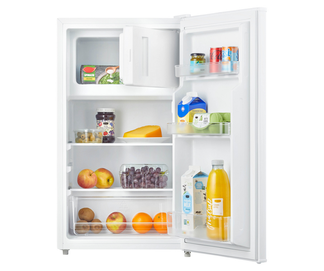 De Tomado TLT4702W is een vrijstaande koelkast met een totale netto inhoud van 94 liter. Dit is voldoende koelruimte voor huishoudens van 1 tot 3 personen. De inhoud van 94 liter zorgt ervoor dat jij al jouw boodschappen er keurig in kwijt kan. De koelkast is voorzien van 3 glazen draagplateaus, 1 groentelade en 1 flessenvak in de deur. Zodra je de deur van de koelkast opent, springt de binnenverlichting aan zodat je goed zicht hebt. Dankzij het lage geluidsniveau van 40 dB hoor je nauwelijks dat hij aanstaat!