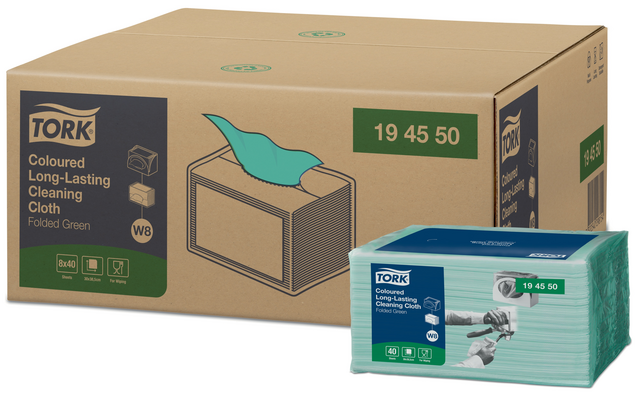 Tork Long Lasting gevouwen reinigingsdoek W8 is multifunctioneel en geschikt voor allerlei schoonmaakwerkzaamheden waarbij sterkte en absorptie nodig is.