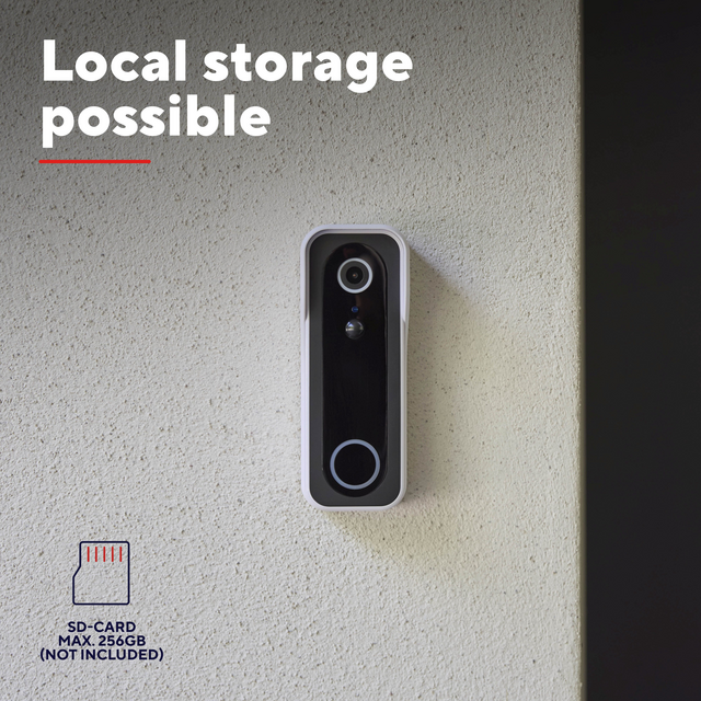 Deurbelcamera Trust DOORCAM-3000B witMet de Trust DOORCAM-3000B weet jij altijd wie er voor de deur staat, waar je ook bent. Deze slimme deurbelcamera geeft je direct contact met bezoekers via 2-weg audio, zodat jij eenvoudig kunt antwoorden, instructies kunt geven of iemand even kunt laten wachten. Dankzij de gratis Trust Smart Home Wifi app bekijk je livebeelden en opnames rechtstreeks op je smartphone, zonder extra hub of abonnement. Je kiest zelf hoe je installeert: volledig draadloos dankzij de ingebouwde batterij, eenvoudig oplaadbaar via USB-C, of permanent aangesloten via 8-24V voeding. De 3MP-camera levert helder beeld, terwijl infrarood nachtzicht en de wide angle lens zorgen voor extra veiligheid, zowel overdag als in het donker. Bewegingsdetectie kan automatisch opnames starten, die je lokaal opslaat op een microSD-kaart tot 256 GB. Zo houd jij controle over je beelden én je kosten. Met de meegeleverde draadloze gong hoor je de bel altijd, zelfs als je telefoon niet binnen handbereik is. Kies uit tientallen melodieën en stel het volume in zoals jij wilt. Let op: voor de gong zijn 3x AAA batterijen nodig. Zo haal je een complete, flexibele en gebruiksvriendelijke oplossing in huis voor meer gemak en veiligheid bij jouw voordeur.Kenmerken: