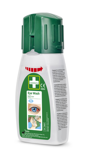 Een gemakkelijk te hanteren flacon met ergonomisch oogbad en royale vloeistofstroom. Snel en eenvoudig te openen. Wordt met een enkele handgreep geopend. Draaien en de flacon is open.