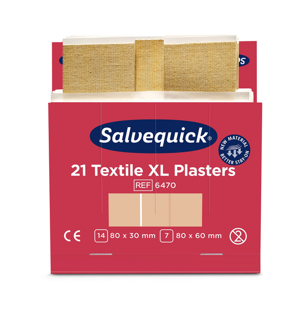 Salvequick extra grote textielpleisters zijn royale, wat grotere pleisters van hoge kwaliteit. De pleisters zijn op allergieën getest. Zij zijn gemakkelijk aan te brengen, flexibel en soepel te gebruiken.