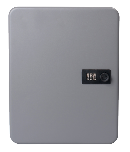Praktisch, elegante, stalen sleutelkast met cijferslot met 3 draaiknoppen. Het cijferslot beschermt tegen ongeautoriseerde toegang.