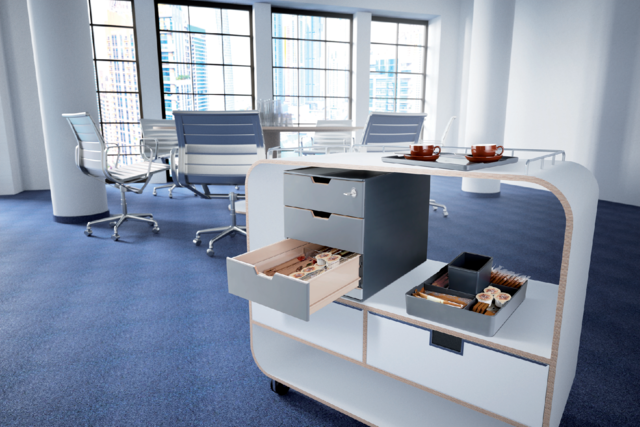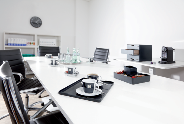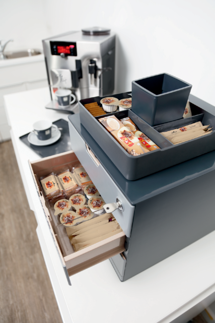 Dankzij de moderne kleuren is de box ideaal voor gebruik in keukens, loungeruimtes en vergaderzalen.