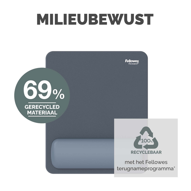 Gemaakt van 69% gerecycled materiaal en 100% recyclebaar met het terugnameprogramma van Fellowes.