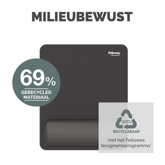 Gemaakt van 69% gerecycled materiaal en 100% recyclebaar met het terugnameprogramma van Fellowes.