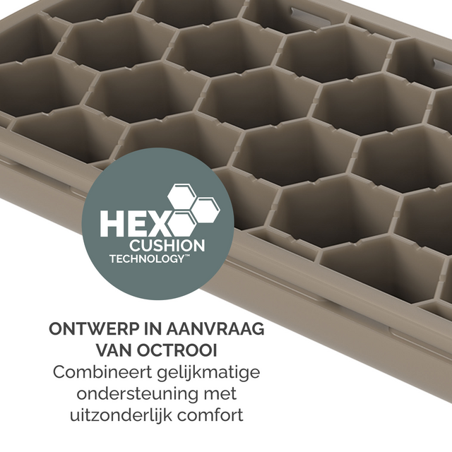 De HEX Cushion Technology™, waarvoor patent is aangevraagd, zorgt voor gelijkmatige ondersteuning en comfort tijdens het typen.
