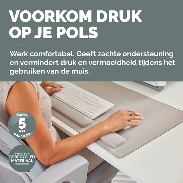 De HEX Cushion Technology™, waarvoor patent is aangevraagd, zorgt voor gelijkmatige ondersteuning en comfort tijdens het gebruiken van de muis. De zachte, stofwerende polssteun heeft een mooie afwerking en zorgt voor een soepele muiservaring. De ingebouwde Microban®-bescherming helpt de groei van bacteriën tegen te gaan en werkt 24/7 voor extra bescherming van het product. Draagbaar, lichtgewicht en compact ontwerp, ideaal voor hybride werken.100% recyclebaar met het terugnameprogramma van Fellowes. Gemaakt om lang mee te gaan met 5 jaar beperkte garantie. Getest door FIRA International Ltd om te voldoen aan de ergonomische eisen van de Europese gezondheids- en veiligheidswetgeving: EN ISO 9241-5.