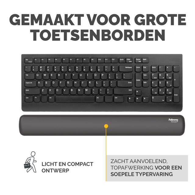 De HEX Cushion Technology™, waarvoor patent is aangevraagd, zorgt voor gelijkmatige ondersteuning en comfort tijdens het typen. De zachte, stofwerende polssteun heeft een mooie afwerking en zorgt voor een soepele typervaring. De ingebouwde Microban®-bescherming helpt bacteriën tegen te gaan en werkt 24/7 voor extra bescherming van het product. 100% recyclebaar via het terugnameprogramma van Fellowes. Gemaakt om lang mee te gaan, met 5 jaar beperkte garantie. Getest door FIRA International Ltd om te voldoen aan de ergonomische eisen van de Europese gezondheids- en veiligheidswetgeving: EN ISO 9241-5.