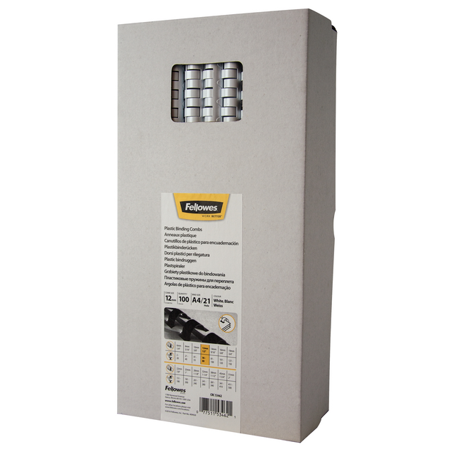 Bindrug Fellowes 12mm 21rings A4 wit 100 stuks