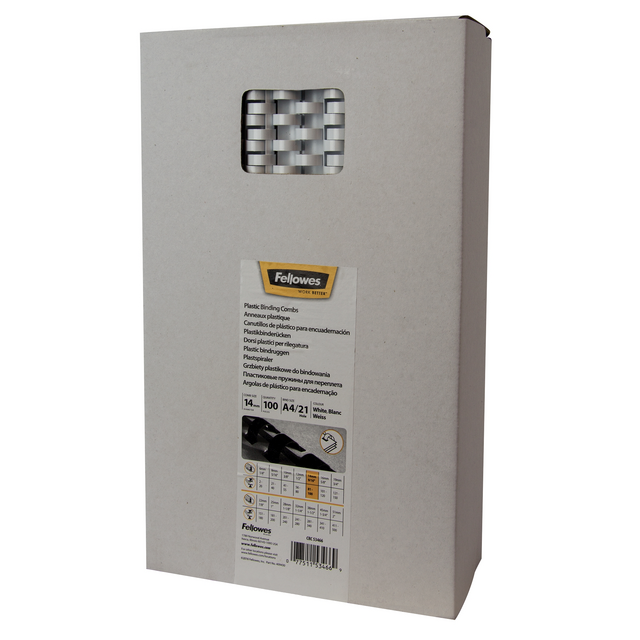 Bindrug Fellowes 14mm 21rings A4 wit 100 stuks