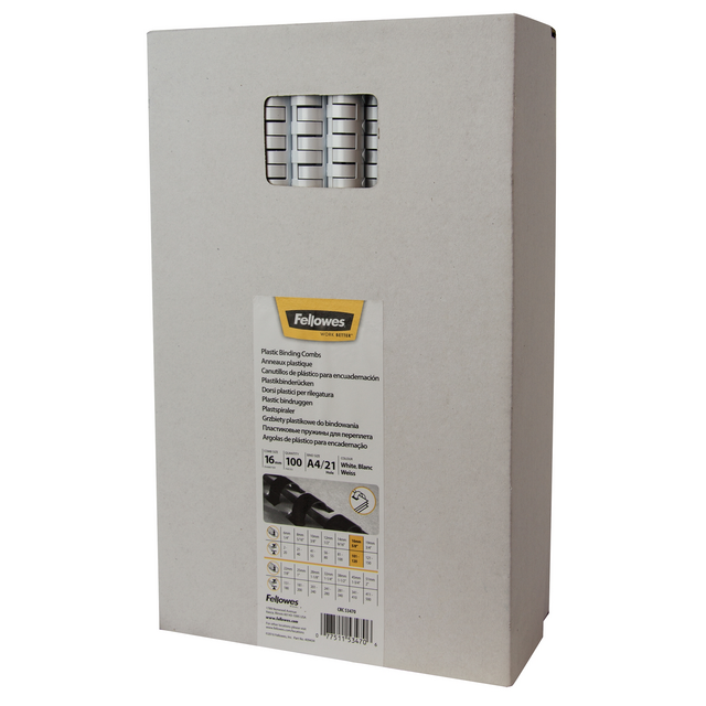 Bindrug Fellowes 16mm 21rings A4 wit 100 stuks