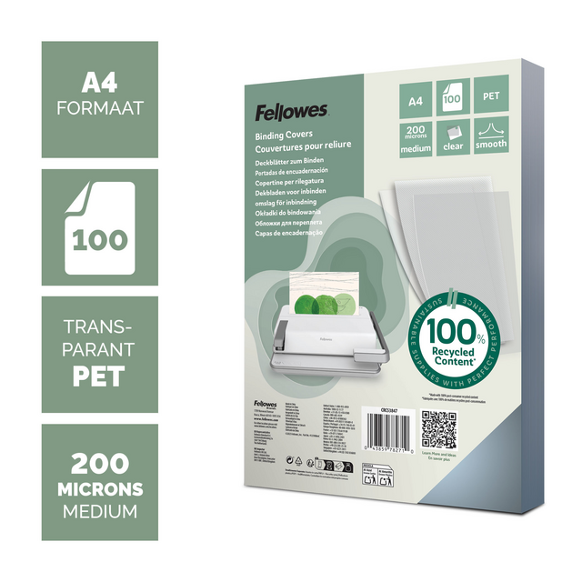 Voorblad Fellowes A4 PET 200micron recycled 100 stuks