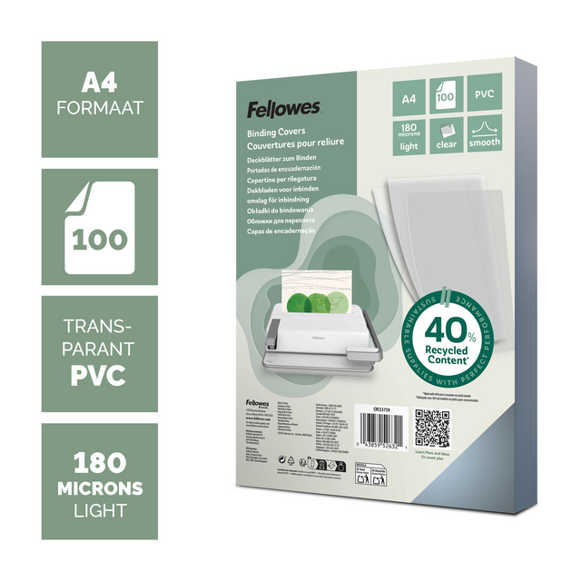 Voorblad Fellowes A4 PVC 180micron recycled 100 stuks