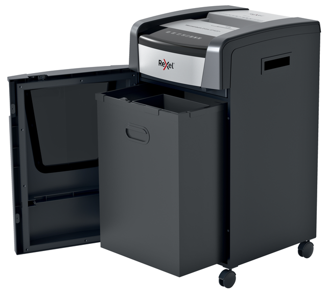 Deze papiervernietiger voor zwaar gebruik vernietigt ook creditcards, nietjes, paperclips en cd's/dvd's .