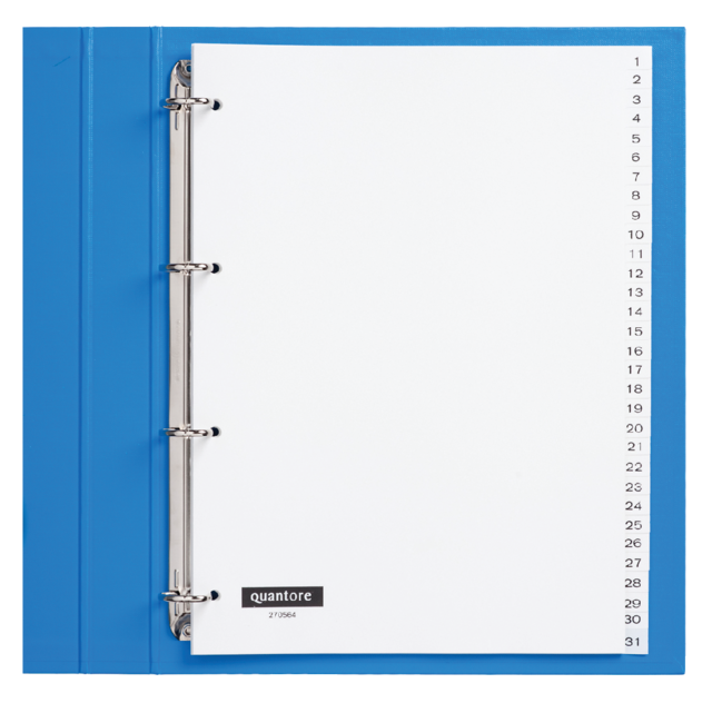 Voor een betrouwbare en overzichtelijke maandindeling kies je de Quantore tabbladen 4-gaats 1-31 genummerd wit karton. Deze kwalitatieve tabbladen zijn gemaakt van stevig wit 170 grams karton en bieden een professionele uitstraling voor elk archief of rapport. De tabs zijn aan beide zijden duidelijk bedrukt en samen met de ponsgaten versterkt met glashelder kunststof, wat zorgt voor extra duurzaamheid. Ideaal voor intensief gebruik in ordners of ringbanden. Bovendien zijn ze FSC-gecertificeerd, wat een milieubewuste keuze garandeert. Een perfecte oplossing voor iedereen die werkt met dagelijkse documenten of uitgebreide dossiers.Kenmerken:
