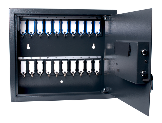 Deze hoogwaardige sleutelkast voor 20 sleutels combineert het hoogste beveiligingsniveau met een uitstekende sleutelorganisatie.