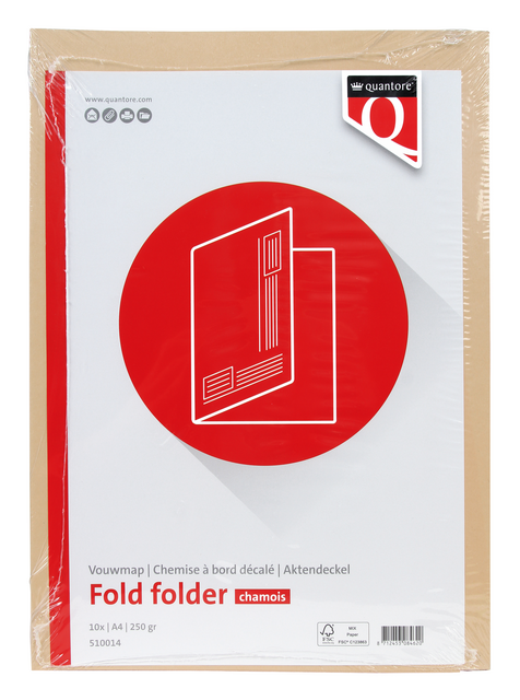 Houd je documenten overzichtelijk en duurzaam opgeborgen met de vouwmap Quantore A4 ongelijke zijde 250gr beige. Deze stevige map is vervaardigd uit 250 grams manillakarton en is zowel FSC- als Blauwe Engel-gecertificeerd, wat betekent dat het karton 100% gerecycled én milieuvriendelijk is. Met het A4-formaat van 218/233x320mm is de map perfect geschikt voor het bewaren van standaard documenten. De ongelijke zijde zorgt voor extra gemak bij het openen en bladeren. Ideaal voor gebruik op kantoor, in archieven of thuis. Verpakt per 5 pakken van 10 stuks in een omdoos – klaar voor dagelijks gebruik.Kenmerken: