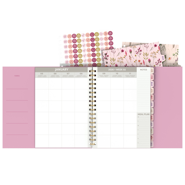Met deze kleurrijke Flowers Bouquet wire-o familieplanner, hou je al je afspraken overzichtelijk bij de hand, en heb je dankzij het grotere formaat plaats genoeg om alles te noteren! In deze planner is ruimte voor 5 gezinsleden en hun afspraken, hobby's en uitstapjes, die je met de bijhorende coole stickers kan aanduiden. Dankzij de wire-o ligt deze agenda mooi open en kan je makkelijk op beide pagina's schrijven. Binnenin vind je full coulour pagina's, met telkens 7 dagen op 2 pagina's, ruimte voor notities en een to-do lijstje. Het binnenwerk is in het Engels. De flexibele kaft heeft een matte finish met een elastische sluiting.