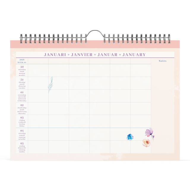 Zoek je een praktische planner voor het hele gezin? Dan ben je bij deze fleurige familiekalender vol toffe prenten aan het juiste adres! Met een XL formaat en ruimte voor 6 gezinsleden behoud jij het overzicht. Deze kalender heeft 1 pagina per week, 6 kolommen en ruimte voor notities.