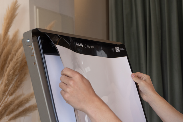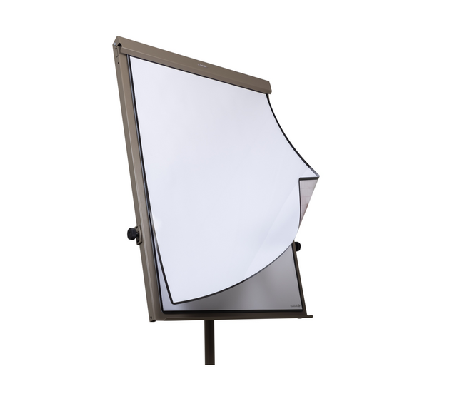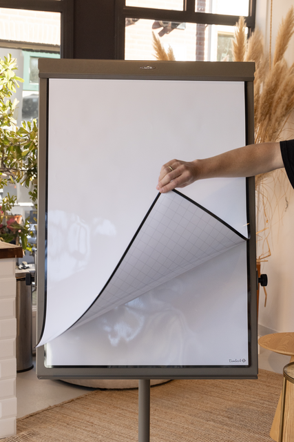 In plaats van wegwerp-flip-overpapier, schrijft u op hoogwaardige whiteboard-vellen die u eenvoudig kunt wissen.