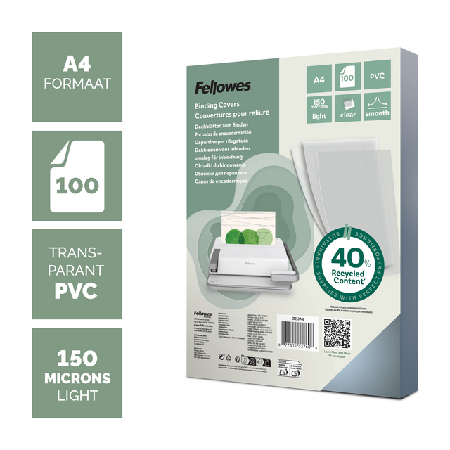 Voorblad Fellowes A4 PVC 150micron recycled 100 stuks