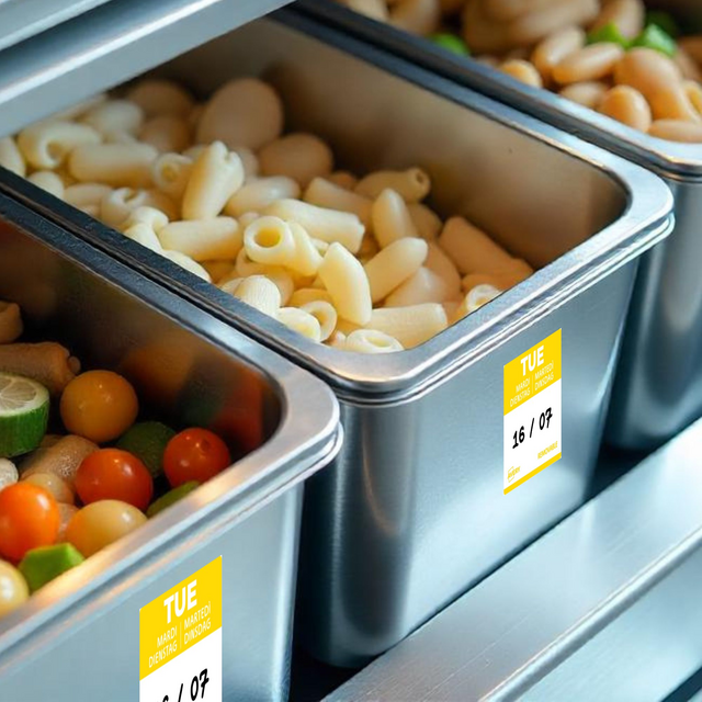 Gekleurde voedsel-dagetiketten zijn essentieel voor efficiënt voorraadbeheer in de horeca. Ze maken het mogelijk om de bereidings- of openingsdatum van voedsel nauwkeurig te volgen. Dankzij een kleurcode per dag identificeert men in één oogopslag de producten die met voorrang gebruikt moeten worden. Dit helpt voedselverspilling te beperken en zorgt voor een optimaal voedselgebruik. Met deze labels voldoet men aan de HACCP-normen en vergemakkelijkt men de controle van de houdbaarheidsdatum. Dankzij de afneembare lijm zijn ze eenvoudig aan te brengen en te verwijderen. Ze kunnen worden gebruikt op alle soorten verpakkingen. In de keuken verbeteren ze de communicatie tussen teams door verwarring over de versheid van de producten te voorkomen. Het gebruik van daglabels betekent dagelijks tijd besparen en tegelijkertijd servicekwaliteit garanderen. Door te investeren in dit efficiënte etiketteringssysteem optimaliseren horeca-eigenaren zowel hun organisatie als hun winstgevendheid.