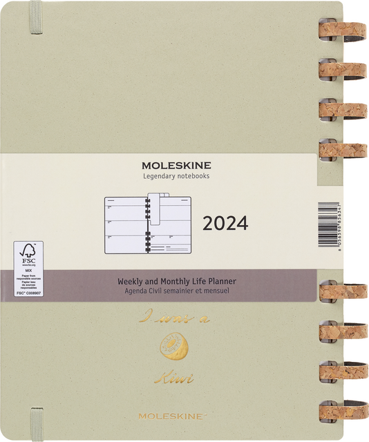 De planner heeft afgeronde hoeken en een elastische sluiting. Voorzien van een flexibele en stevige spiraalbinding van kurk.
