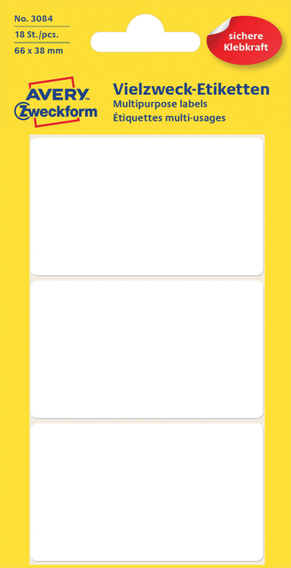 Etiket Avery Zweckform 3084 66x38mm wit 18 etiketten