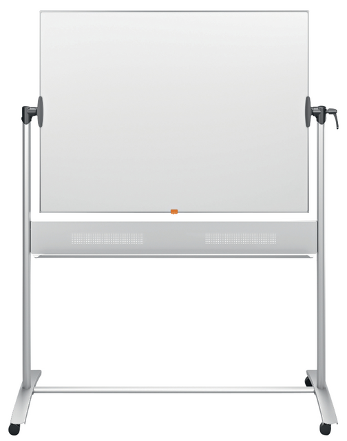 Dit magnetische whiteboard met mobiel onderstel is een ideale oplossing voor samenwerking, zoals brainstormsessies, scrum-meetings en trainingen in zowel kantoor- als schoolomgevingen. Het gelakte stalen oppervlak biedt verhoogde uitwisbaarheid en is minder gevoelig voor schaduwsporen, vlekken, krassen en deuken – perfect voor matig gebruik. Het mobiele whiteboard is ontworpen met een modern, slank en onopvallend frame dat de schrijfruimte op het oppervlak maximaliseert. Het dubbelzijdige bord beschikt over een soepel horizontaal draaimechanisme, waardoor het eenvoudig te roteren is in beperkte ruimtes en extra schrijfcapaciteit biedt aan beide zijden.*Producteigenschappen: