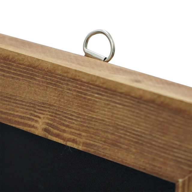 Stevig afgewerkt, afgerond en in verstek gezaagd houten frame, voorzien van een 3mm dik melamine gecoat zwart bord.