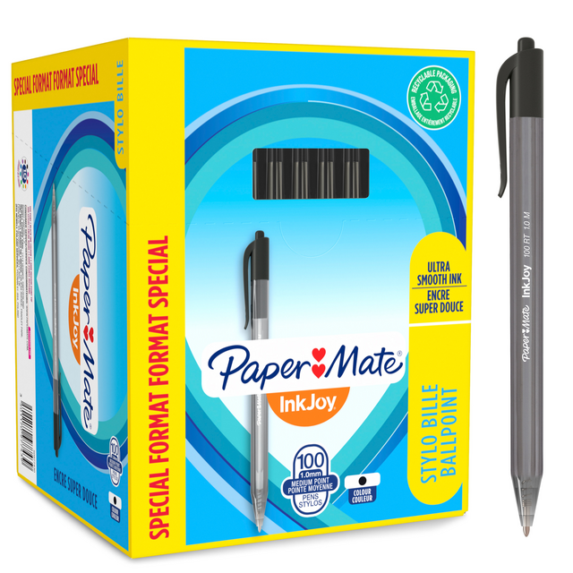Balpen Paper Mate Inkjoy 100RT medium zwart valuepack 80+20 gratis