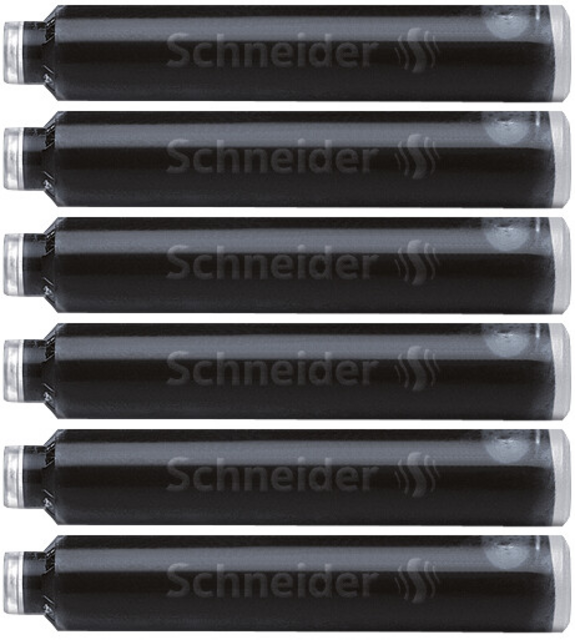 Standaard formaat inktpatronen met kogelsluiting. Passend in de vulpennen van Schneider, Pelikan en vele andere merken. De koningsblauwe inkt is uitwisbaar. Schneider is Emas gecertificeerd.