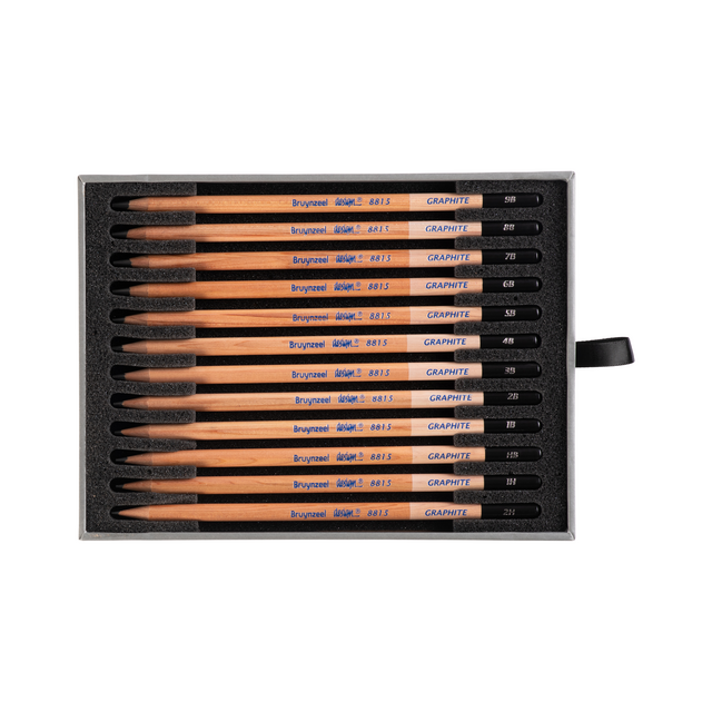 Grafietpotlood Bruynzeel Design met luxe bewaardoos set à 12 hardheden grijs