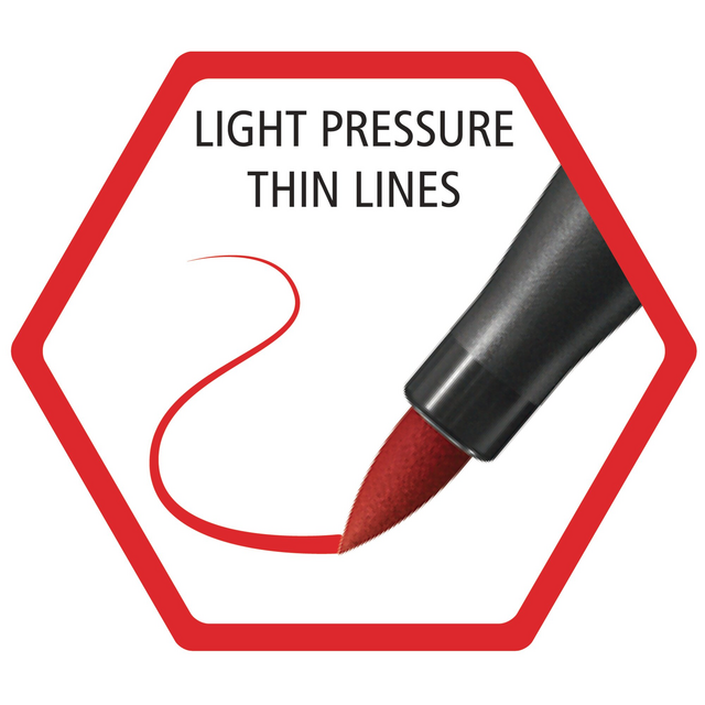 De Pen 68 brush heeft alles. Zelfs beginners slagen er gemakkelijk in te brushletteren dankzij de stevige en toch flexibele punt. Oefen lichte of (heel) stevige druk uit op de flexibele penseelpunt van de viltstift. Dit bepaalt hoe dik of dun de lijnen zullen worden. In een grote keuze aan prachtige kleuren. Met de inkt op waterbasis kun je allerlei speciale effecten creëren, zoals aquareleffecten of mooie kleurverlopen. Daarom zullen ook ervaren brushletteraars de Pen 68 brush met veel plezier gebruiken. Alles uiteraard met de vertrouwde kwaliteit, made in Germany. De Pen is extra duurzaam, vanaf heden is de dop en penbehuizing gemaakt van 96% bio-gebaseerd kunststof volgens massabalans benadering.
