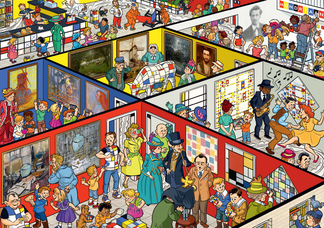 Boeiende puzzel van 1.000 stukjes. Onderschat niet hoeveel speelplezier je hieraan hebt beleefd. Thema: Mondriaan