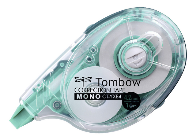 De tape hecht goed op papier en laat niet gemakkelijk los bij overschrijven. Het heeft een controlesysteem om losse tape indien nodig strak te trekken. MONO YXE heeft geen droogtijd en kan direct en schoon worden overschreven. Geen kopie- of faxschaduwen. Behuizing gemaakt van 100% gerecycled plastic. Eenvoudig navulbaar.