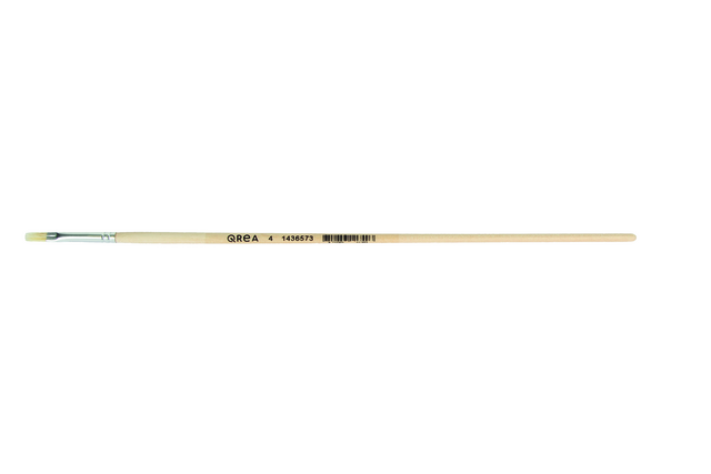 Kwast Qrea synthetisch haar nr. 4 – 4,9mm.Ontdek de perfecte kwast voor jouw kunstwerken met de Qrea kwast nr. 4, ontworpen voor authentieke en ambachtelijke kunstenaars. Dankzij de platte vorm en de gelijkaardige aluminium bus biedt deze kwast optimale precisie en controle bij elke penseelstreek. Het synthetische haar enorme hoge elasticiteit met uitstekende vormvastheid, waardoor je telkens weer consistente en professionele resultaten behaalt. De natuurlijk gelakte houten steel ligt prettig in de hand en deze kwast is geschikt voor diverse toepassingen met aquarel-, plakkaat-, olie- en acrylverf.Kenmerken: