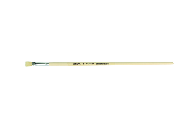 Kwast Qrea synthetisch haar nr. 8 – 8,3mm.Ontdek de perfecte kwast voor jouw kunstwerken met de Qrea kwast nr. 8, ontworpen voor authentieke en ambachtelijke kunstenaars. Dankzij de platte vorm en de gelijkaardige aluminium bus biedt deze kwast optimale precisie en controle bij elke penseelstreek. Het synthetische haar enorme hoge elasticiteit met uitstekende vormvastheid, waardoor je telkens weer consistente en professionele resultaten behaalt. De natuurlijk gelakte houten steel ligt prettig in de hand en deze kwast is geschikt voor diverse toepassingen met aquarel-, plakkaat-, olie- en acrylverf.Kenmerken: