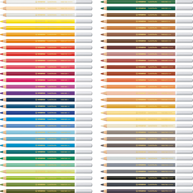 • Het hoge aandeel aan pigmenten in de CarbOthello potloden garandeert een sterke licht- en dekkracht en bovendien een voortreffelijke lichtechtheid in 60 zeer heldere kleuren.