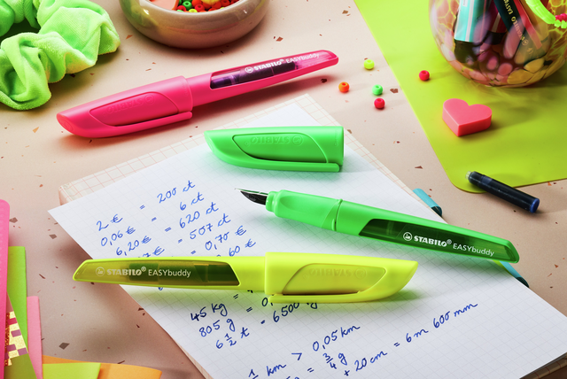 Dankzij de ergonomische gripzone is de STABILO EASYbuddy zowel geschikt voor rechts- en linkshandigen en ligt comfortabel en zeker in de kinderhand. De pen is gemaakt van duurzaam plastic en kan daarmee alle uitdagingen op school aan. De punt met geïntegreerde iridum schrijfpunt is verkrijgbaar in varianten met L voor linkshandigen en M punt voor rechtshandigen.