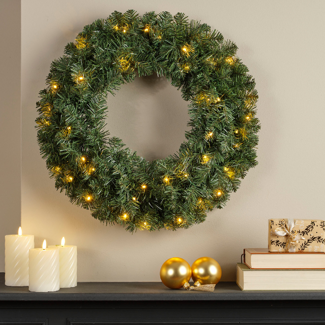 Deze prachtige Everlands 60 cm Imperial verlichte Krans brengt direct de kerstsfeer in huis.
