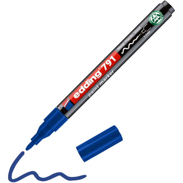 Het bij de hand hebben van de edding 791 lakmarker kan een beslissende factor zijn voor een duurzaam zakelijk succes. Hiermee is productief worden in de productie-industrie veel gemakkelijker. Zelfs onder onzekere omstandigheden staat deze edding zijn mannetje.Voor gebruik: Schud de marker met de dop erop. Verwijder de dop. Pomp de marker met de punt omlaag op bijv. een stuk afvalpapier. Pomp deze voorzichtig op en neer tot de punt met inkt is gevuld. De marker is nu gereed voor gebruik. Horizontaal bewaren.Eigenschappen: